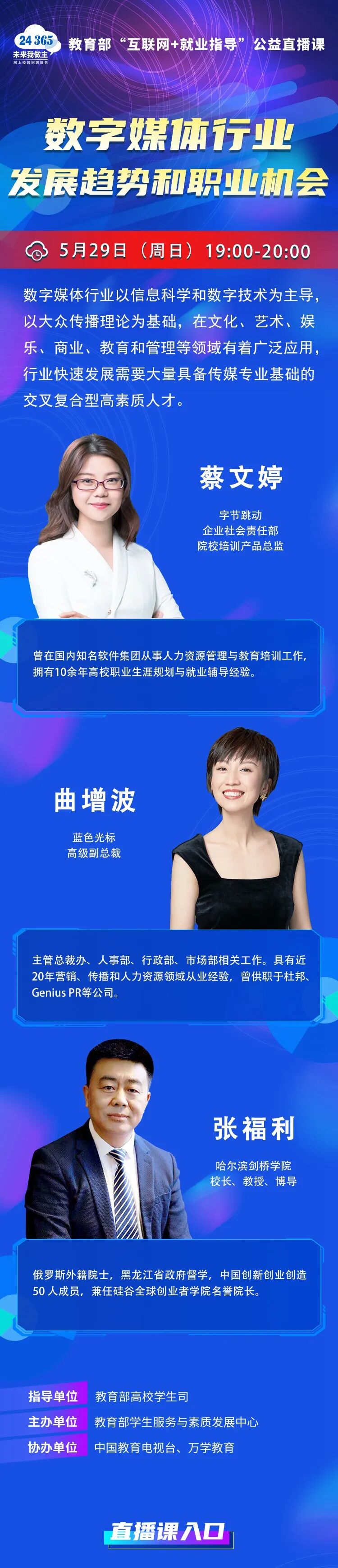 【课程预告】教育部24365就业公益直播课:数字媒体行业发展趋势和职业机会